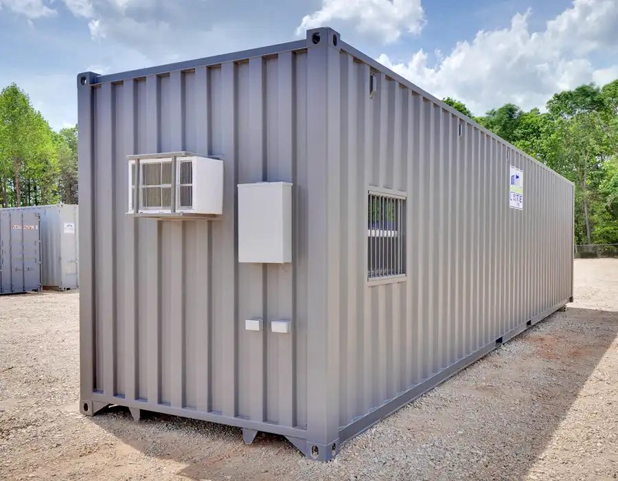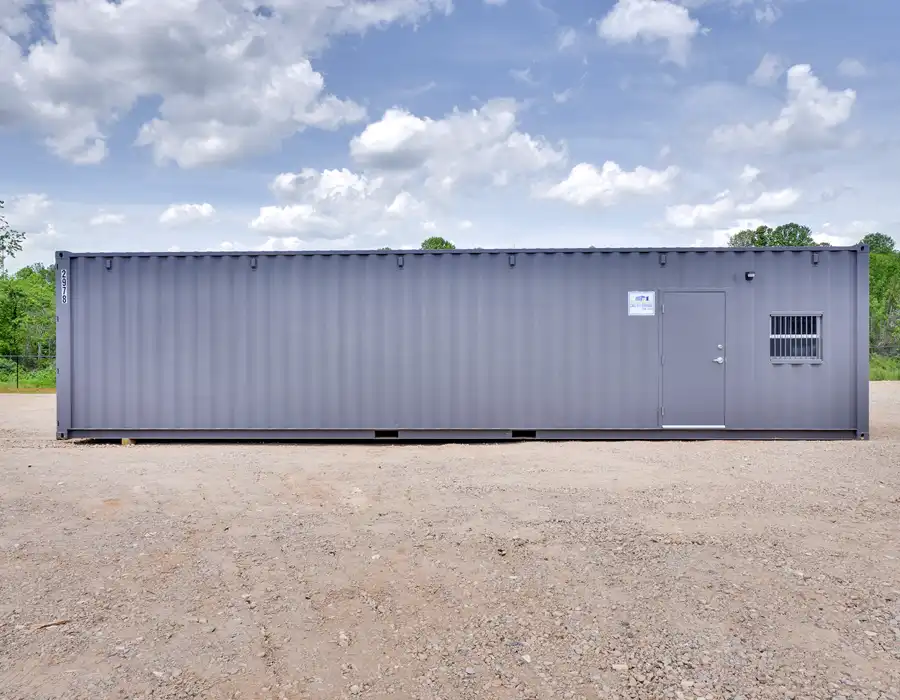 This 40-foot combo container office is professionally converted from a shipping container to deliver a durable, all-in-one solution for onsite office space and secure storage. The 12-foot office area is fully paneled and insulated and includes a thru-wall HVAC system for year-round comfort, along with a built-in desk and plan table that create a practical workspace for planning and day-to-day operations. The remaining portion of the container is an unfinished storage area with wood floors and steel walls, providing a rugged space for storing tools, equipment, and materials. Designed for versatility and reliability, this combo container office is well suited for job sites, remote locations, and temporary or long-term projects.